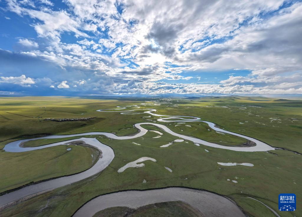 9月14日拍攝的內蒙古呼倫貝爾市陳巴爾虎旗草原上的莫爾格勒河(無人機照片)。