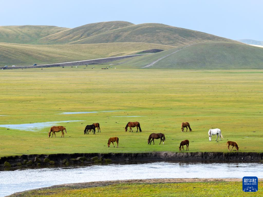 9月14日在內蒙古呼倫貝爾市陳巴爾虎草原拍攝的馬群(無人機照片)。