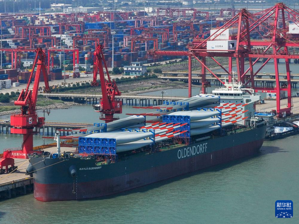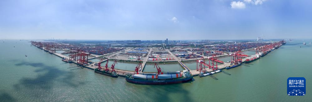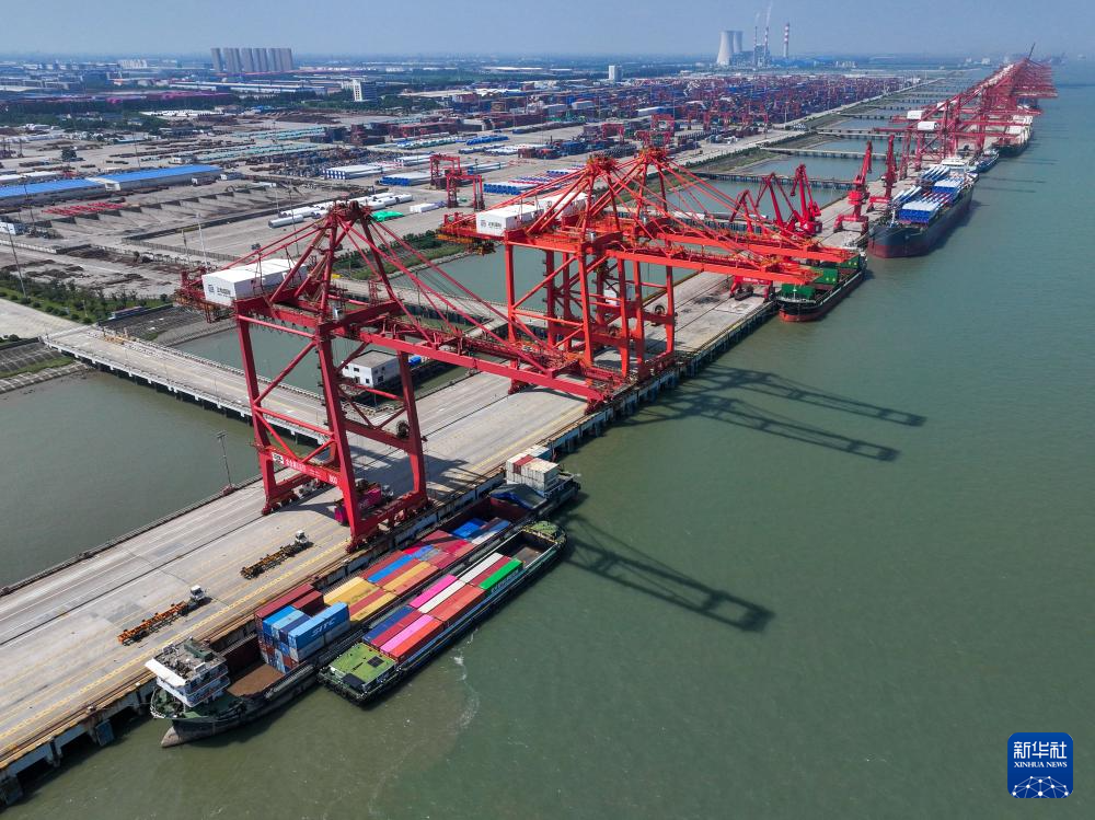 近日,位于長江入??诘慕K太倉港一片繁忙,港口內的船只和貨車按部就班運輸、裝卸貨物。據江蘇太倉港口管委會介紹,2025年1至8月份,太倉港完成集裝箱吞吐量580萬標箱,同比增長2.2%,完成貨物吞吐量1.99億噸,同比增長7.9%,其中外貿貨物吞吐量完成8659萬噸,同比增長11.7%,汽車、電池、光伏“新三樣”出口超50萬標箱,同比增長45%。