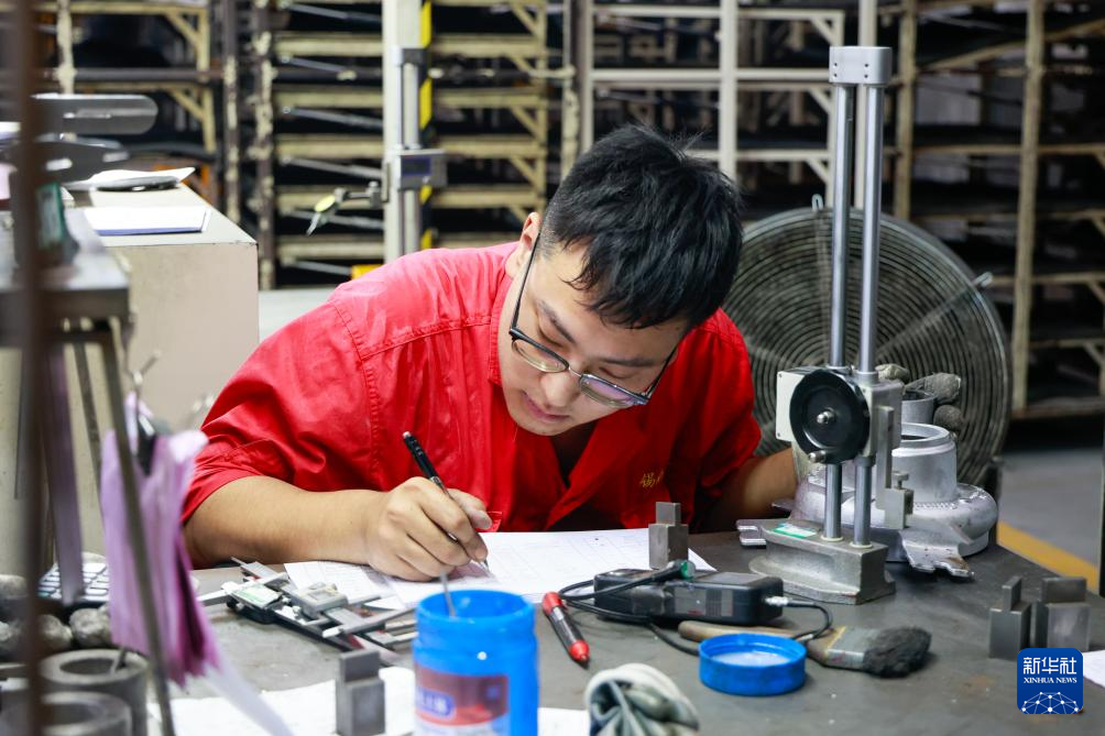 9月16日,工作人員在江蘇無錫濱湖區無錫錫南科技股份有限公司的生產車間進行砂芯制造。