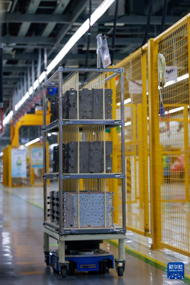 9月15日,一輛AGV自動駕駛小車在江蘇無錫高新區綜合保稅區捷普電子(無錫)有限公司的生產車間里運輸原材料。