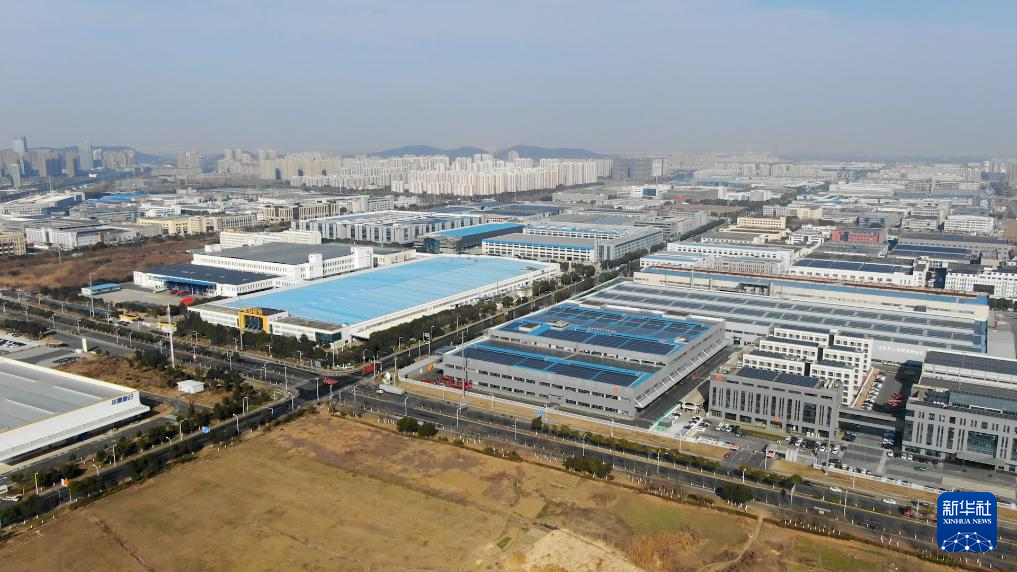 江蘇無錫錫山區拍攝的電動車產業園(2024年1月攝,無人機照片)。