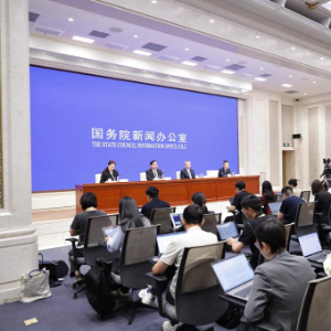 9月17日,國務院新聞辦公室在北京舉行“高質量完成‘十四五’規劃”系列主題新聞發布會,國務院國資委主任張玉卓、國務院國資委副主任袁野、國務院國資委副主任李鎮介紹砥礪奮進“十四五”,中央企業高質量發展情況,并答記者問。這是記者在現場工作。