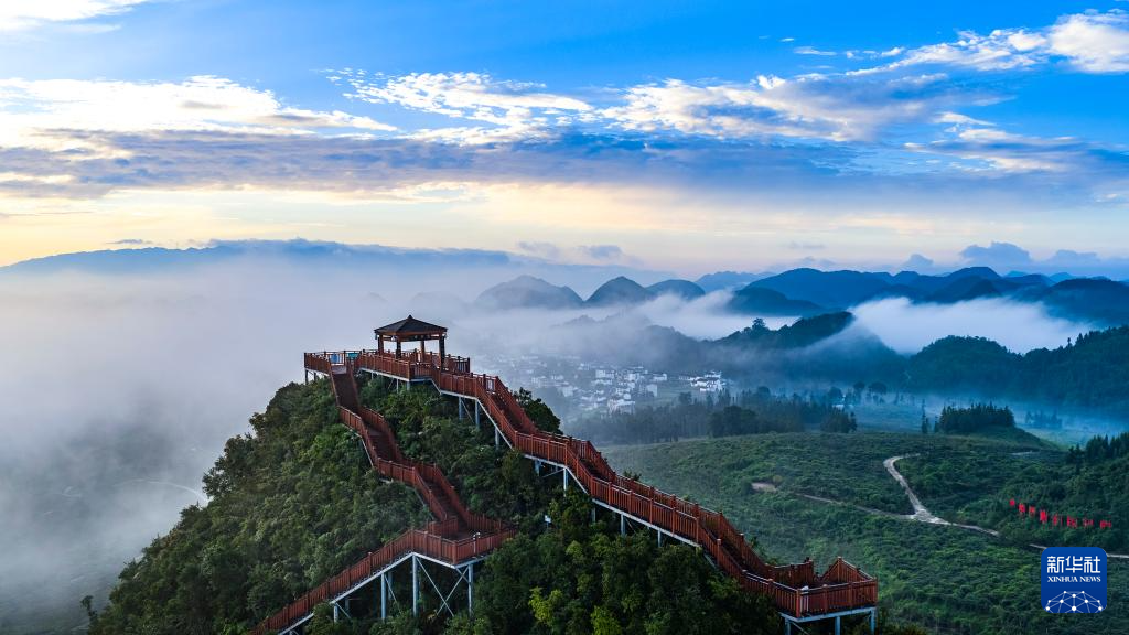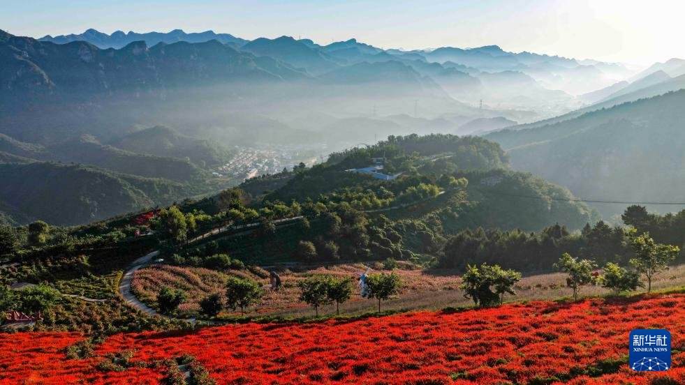 9月7日在河北省承德市興隆縣南天麗景風景區拍攝的秋日晨景(無人機照片)。