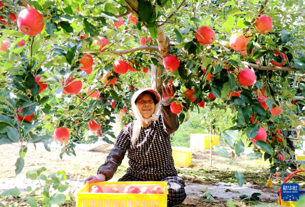9月11日,在甘肅省平涼市靜寧縣威戎鎮楊灣村,果農在采摘蘋果。