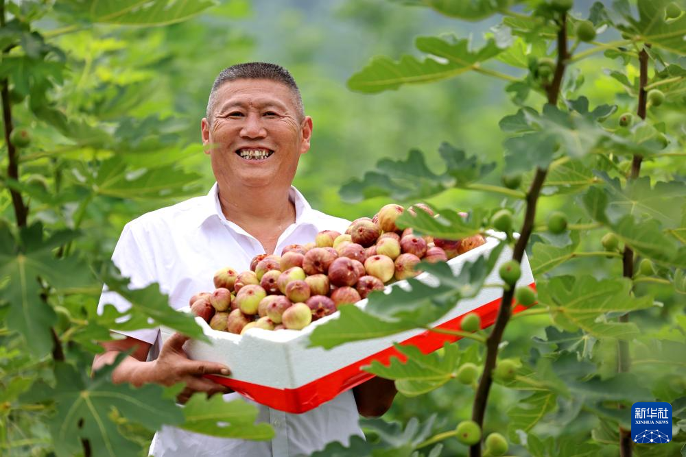 9月7日,山東省棗莊市市中區孟莊鎮苗莊村農民在果園展示剛剛采摘的無花果。