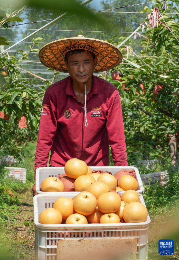 9月9日,在山東省鄒平市臺子鎮一處梨園,果農搬運剛采摘的秋月梨。