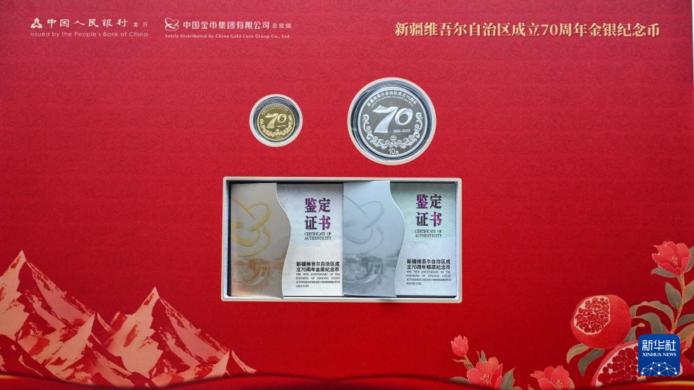 9月19日,中國人民銀行發行新疆維吾爾自治區成立70周年金銀紀念幣一套。該套金銀紀念幣共2枚,其中金質紀念幣1枚,銀質紀念幣1枚,均為中華人民共和國法定貨幣。