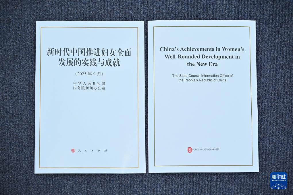 這是9月19日在發布會現場拍攝的《新時代中國推進婦女全面發展的實踐與成就》白皮書。
