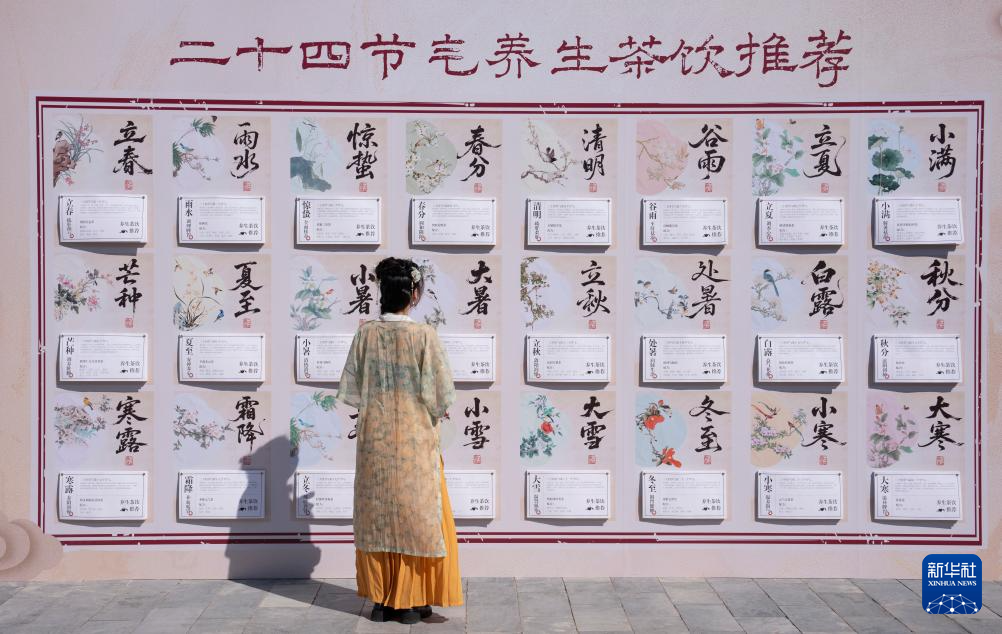9月19日,一名女孩觀看二十四節氣養生茶飲推薦展板。