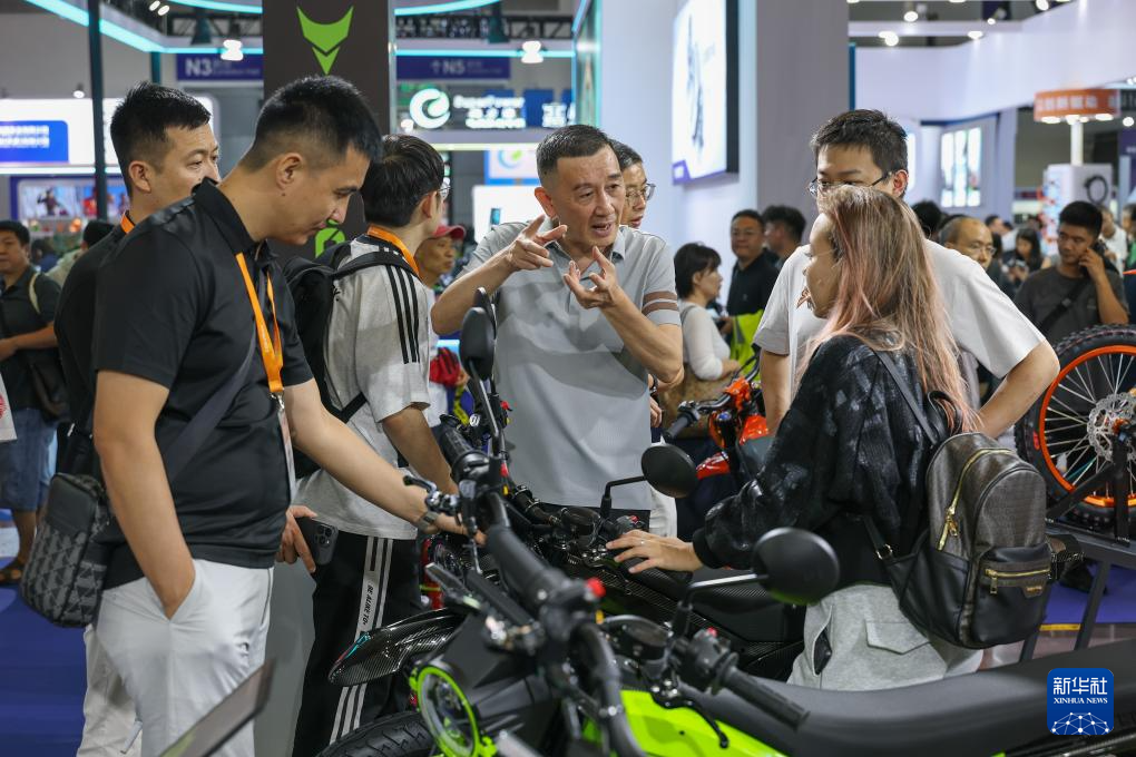 9月19日,觀眾在摩博會現場了解國產新能源摩托車性能。