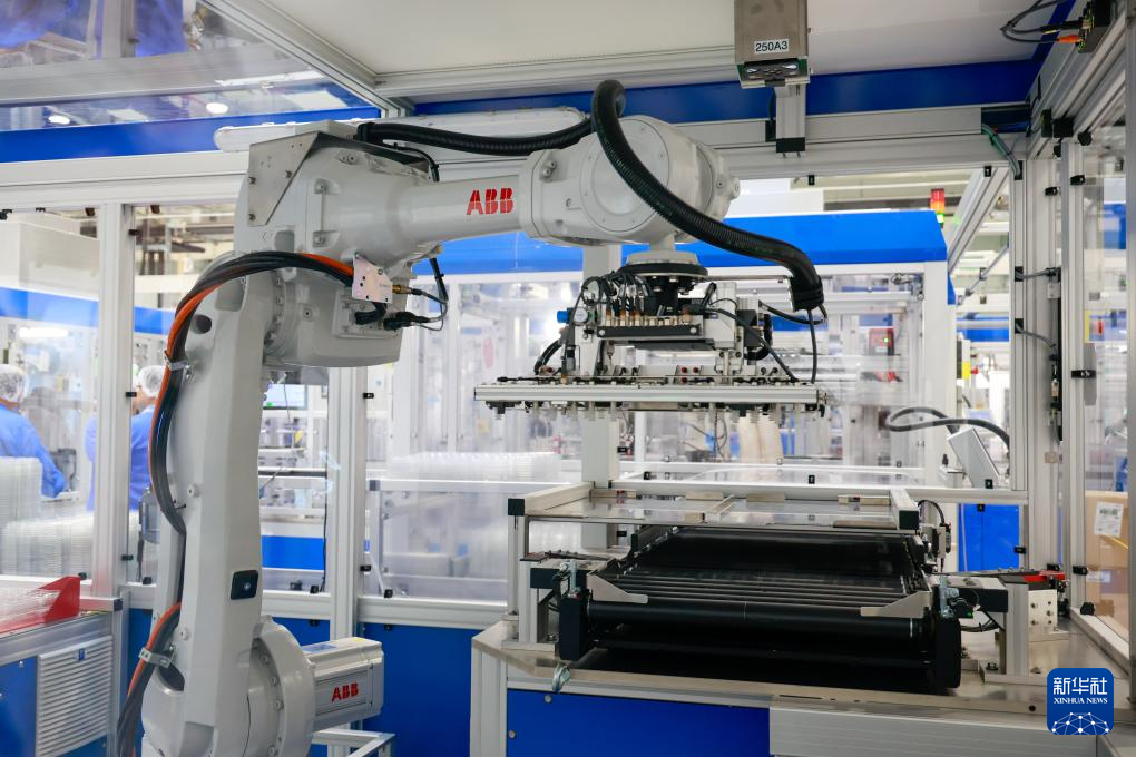 9月18日,在江蘇常州中瑞(常州)國際產業創新園,機械臂在醫沛生醫療器械制造(常州)有限公司生產車間作業。