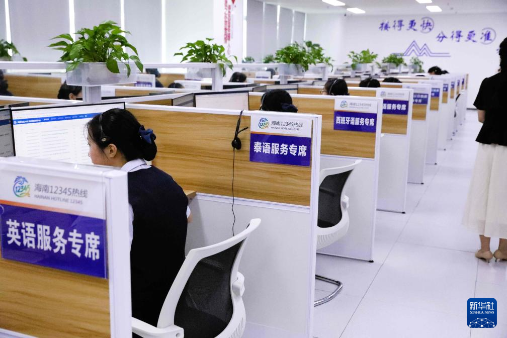 9月23日,海南12345熱線接線員在外語服務專席工作。