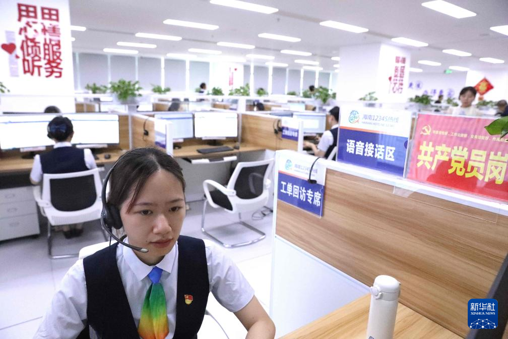 9月23日,接線員在海南12345熱線中心話務廳接聽群眾來電。