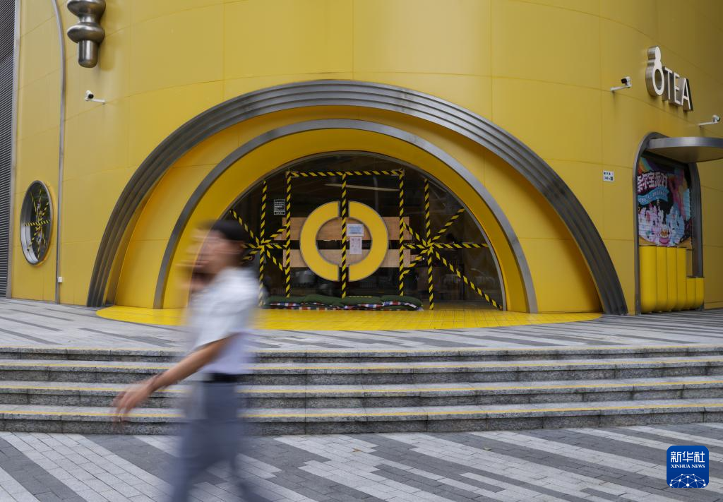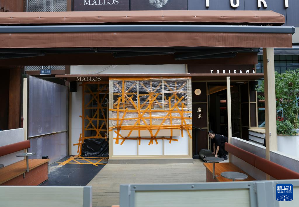 9月23日,在深圳市福田區一處商場,臨街的玻璃門窗貼上了膠帶防范臺風。