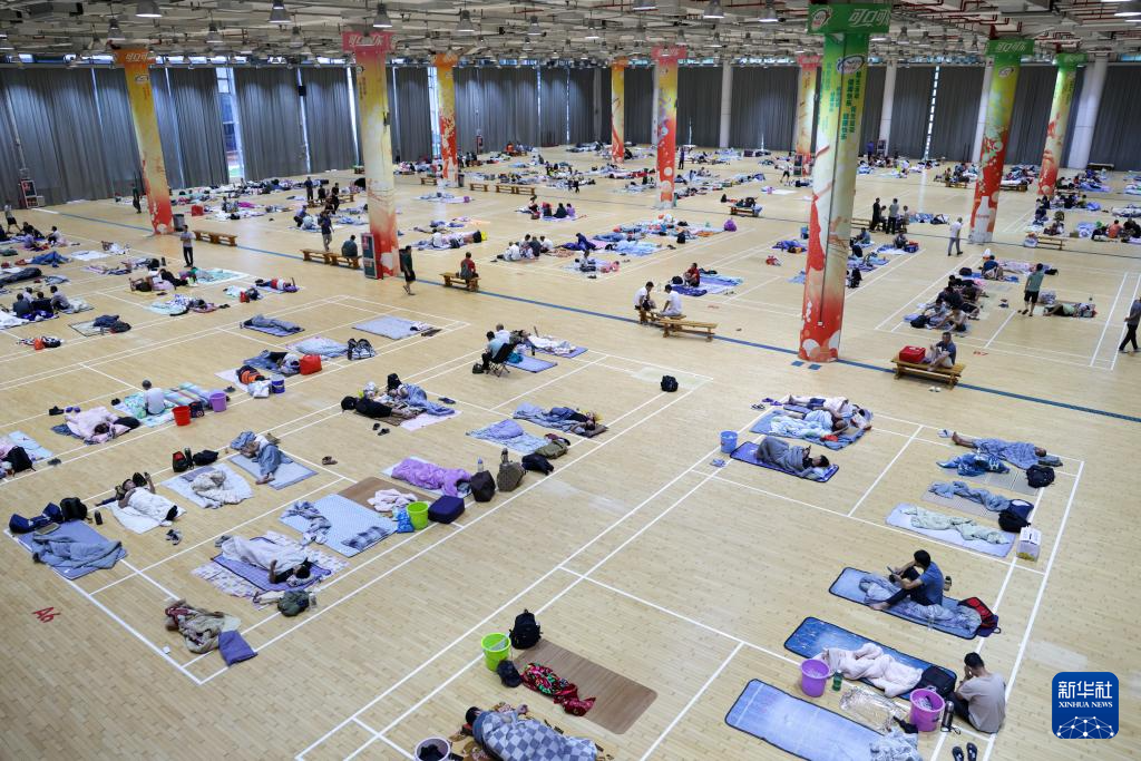 9月23日,在深圳大學粵海校區羽毛球館,避險群眾在場館內休息。