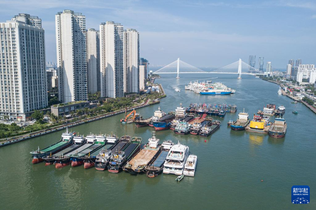 9月23日,漁民將漁船駛入位于??诘哪隙山鱼獗茱L。