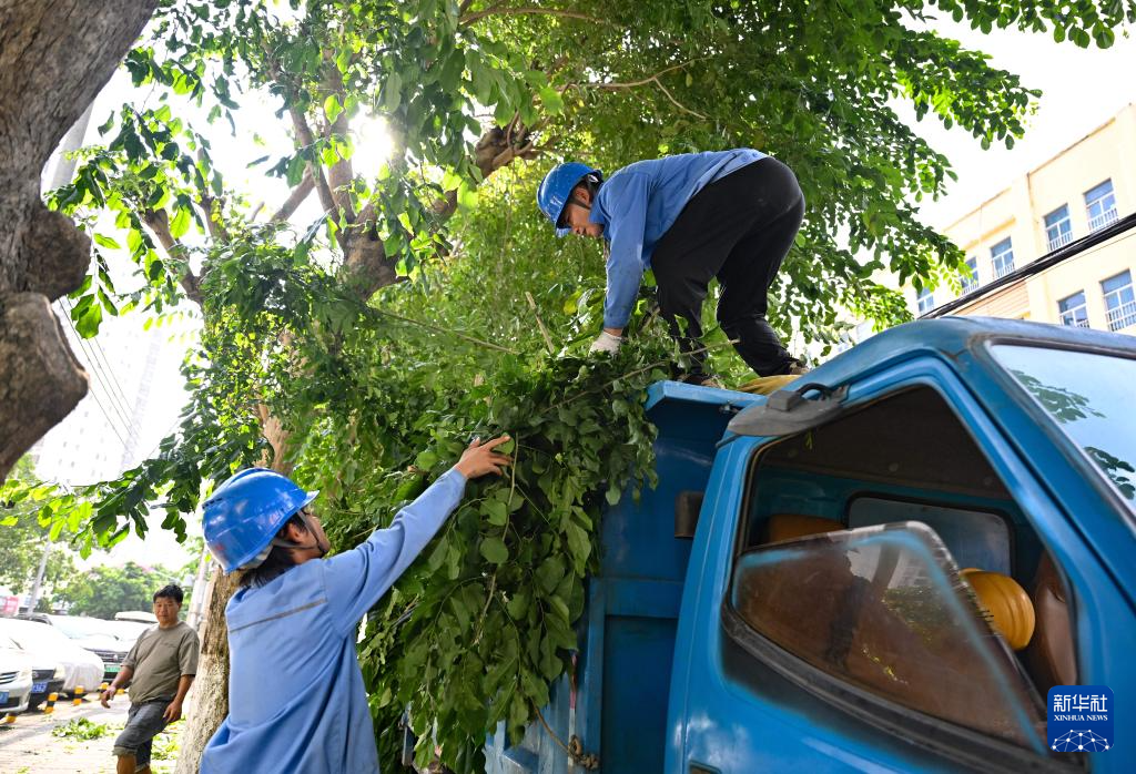 9月23日,電力工人在修剪靠近電線的樹枝。