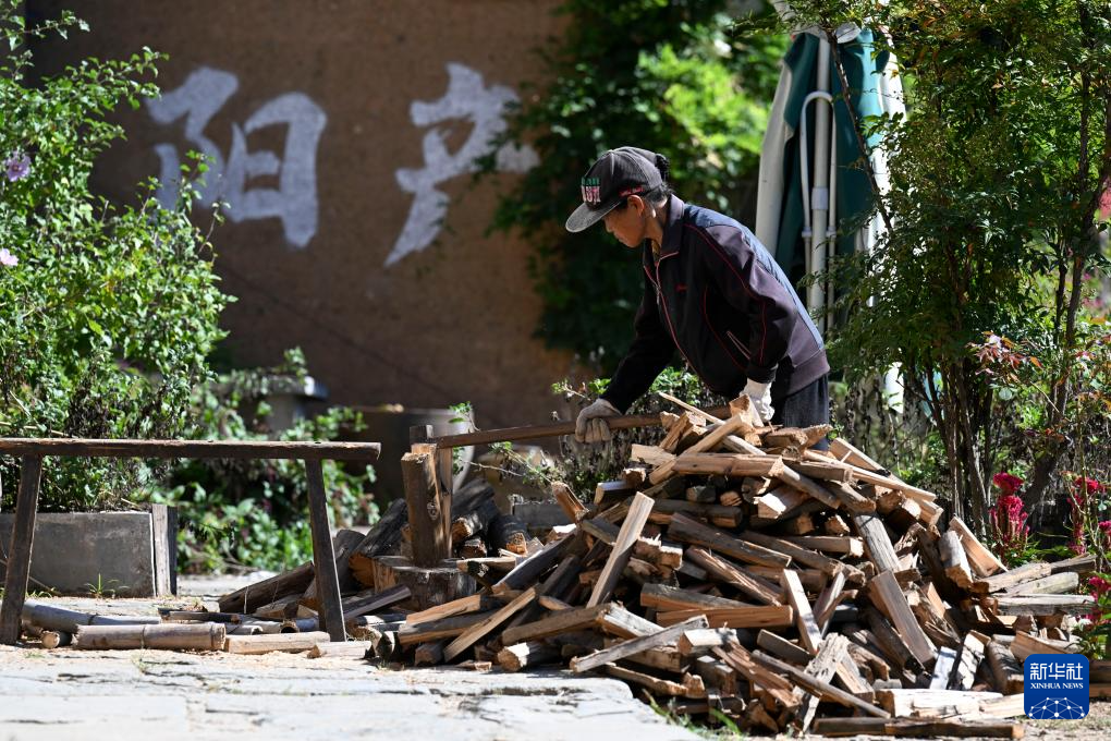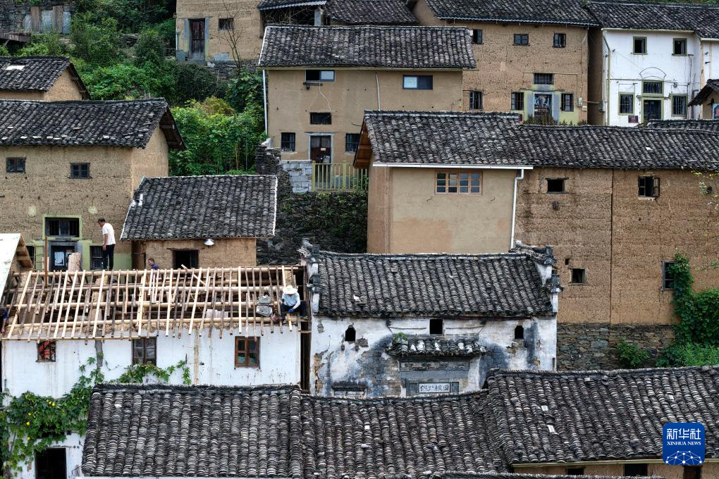 9月18日,陽產村村民在修繕房屋(無人機照片)。