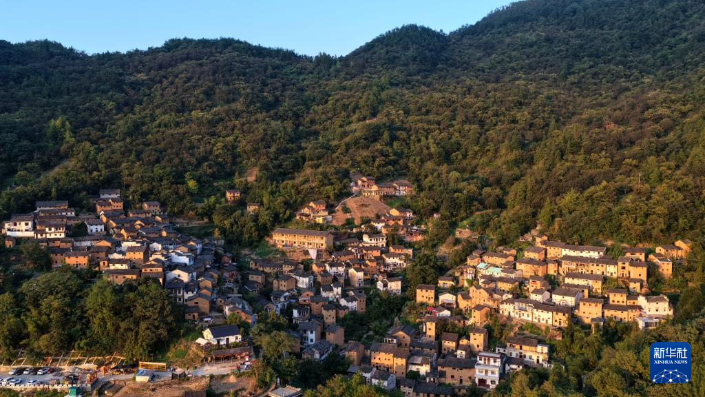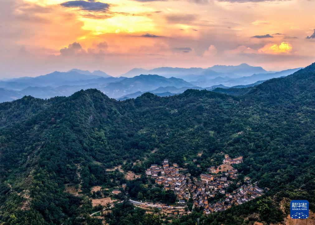 9月18日拍攝的夕陽照耀下的陽產村(無人機照片)。