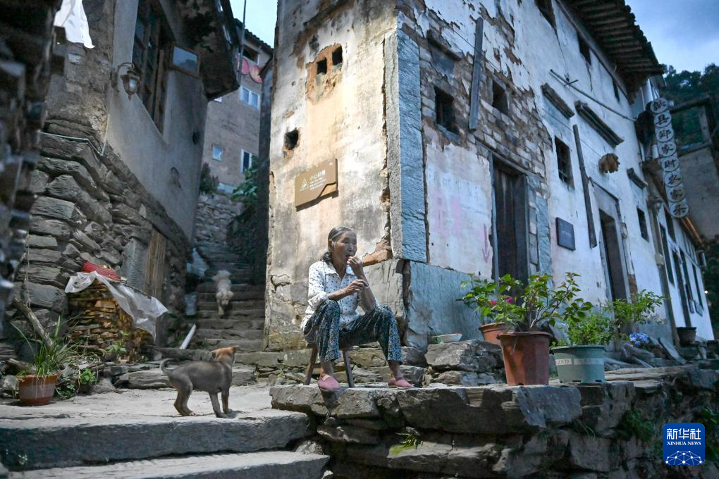 9月17日,陽產村村民吃完晚飯后在房前休息。