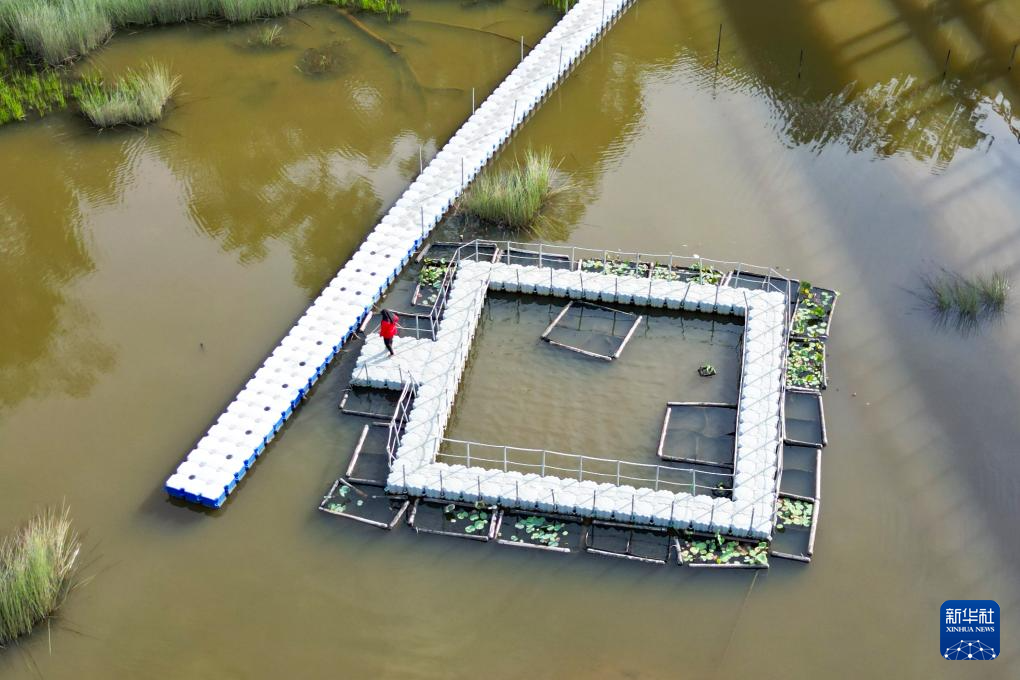 這是9月3日在馬來西亞彭亨州珍尼湖生物圈保護區拍攝人的工培育荷花的基地(無人機照片)。