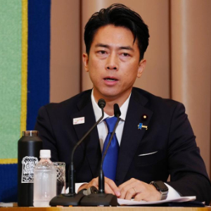 9月24日,在日本東京,日本自民黨總裁選舉候選人、農林水產大臣小泉進次郎在辯論會上發言。