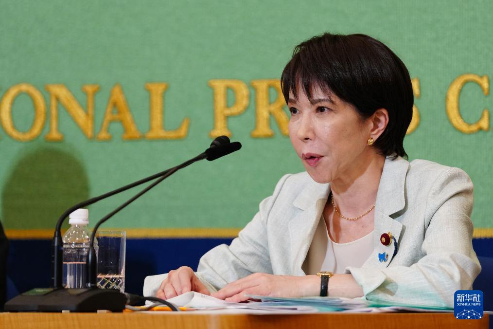 9月24日,在日本東京,日本自民黨總裁選舉候選人、前經濟安全保障擔當大臣高市早苗在辯論會上發言。