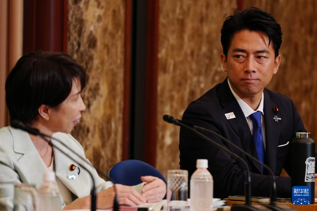 9月24日,在日本東京,日本自民黨總裁選舉候選人小泉進次郎(右)和高市早苗在辯論會上。