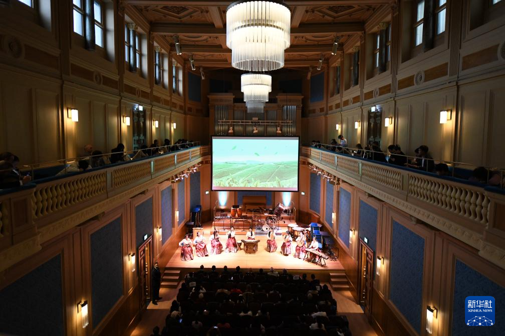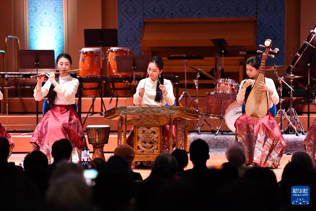 9月23日,在瑞士日內瓦,表演者在2025年“天涯共此時——中秋節”文藝晚會上演奏音樂。