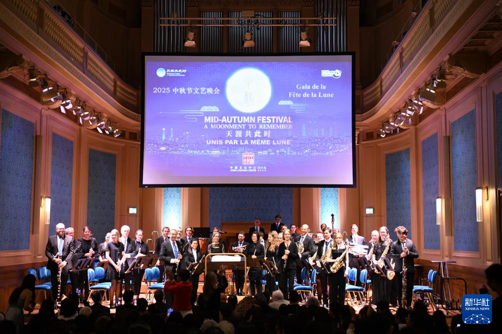 由瑞士伯爾尼中國文化中心主辦的2025年“天涯共此時——中秋節”文藝晚會23日晚在日內瓦舉行。來自杭州歌劇舞劇院“西子國樂”民樂團和瑞士日內瓦州立管樂團的音樂家們為現場觀眾獻上了一場中西合璧的精彩演出,共同慶祝中華人民共和國成立76周年和中秋佳節。