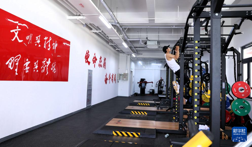 9月25日,大學生在北京體育大學海南國際學院的體育館內健身。