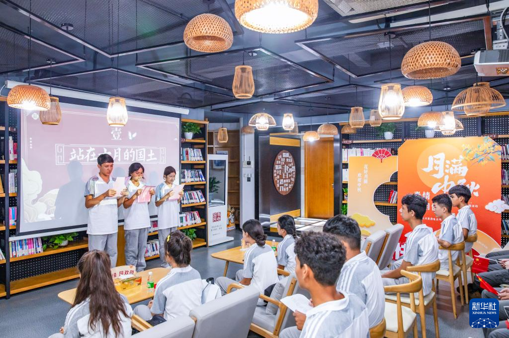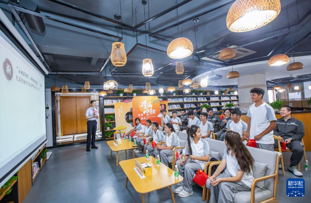 9月29日,“月圓公益”志愿服務隊的青年志愿者與新疆班的學生們在進行中秋詩詞競答。