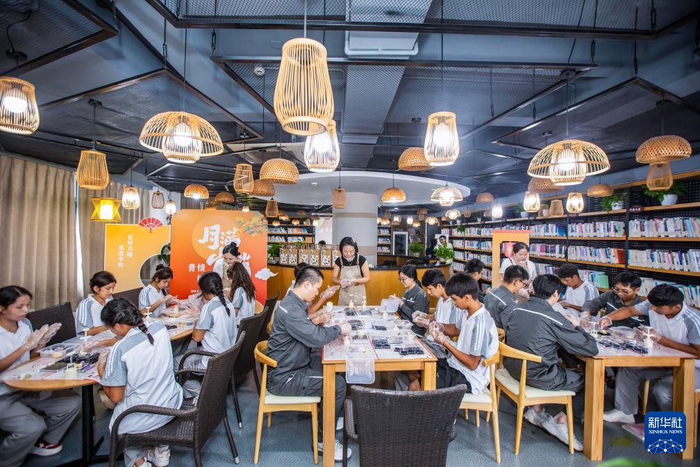 9月29日,“月圓公益”志愿服務隊的青年志愿者與新疆班的學生們一起做月餅。