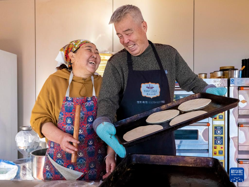 9月17日,在內蒙古呼倫貝爾市額爾古納市恩和俄羅斯族民族鄉恩和村,一名蒙古族婦女(左)與她的俄羅斯族丈夫共同制作傳統的俄羅斯族列巴。