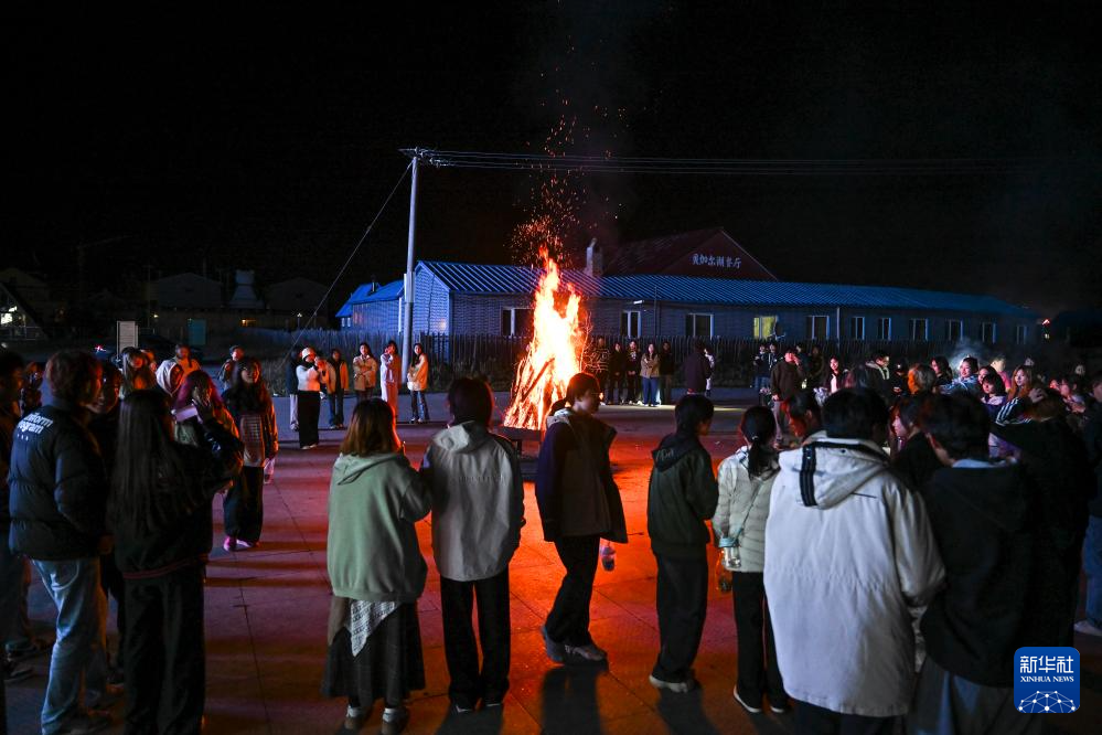 9月17日,在內蒙古呼倫貝爾市額爾古納市恩和俄羅斯族民族鄉恩和村,游客參加篝火晚會。