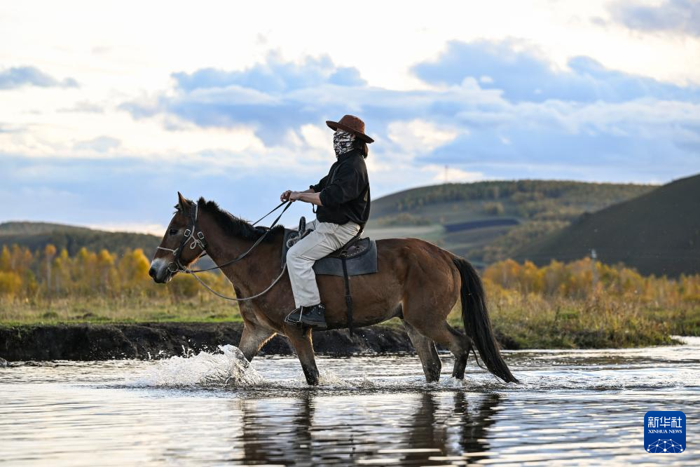9月17日,在內蒙古呼倫貝爾市額爾古納市恩和俄羅斯族民族鄉恩和村,游客體驗騎馬。