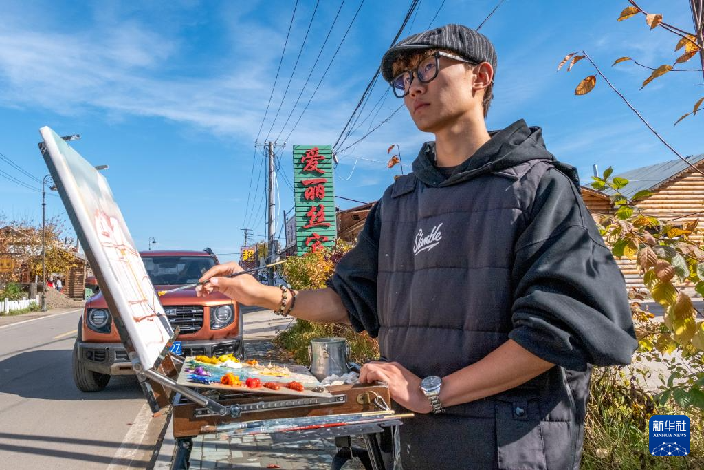9月26日,一名學生在內蒙古呼倫貝爾市額爾古納市恩和俄羅斯族民族鄉恩和村寫生。
