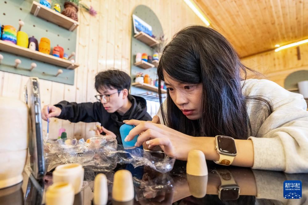 9月17日,在內蒙古呼倫貝爾市額爾古納市恩和俄羅斯族民族鄉恩和村,游客們體驗繪制套娃。