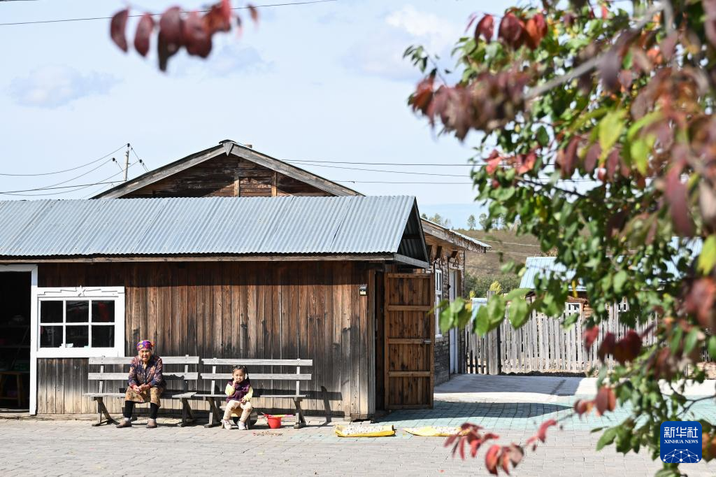 9月18日,在內蒙古呼倫貝爾市額爾古納市恩和俄羅斯族民族鄉恩和村,當地居民在一座木刻楞外休息。