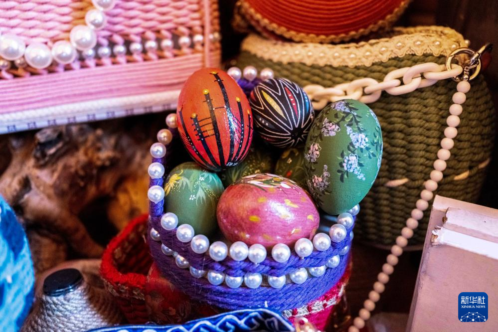 這是9月18日在內蒙古呼倫貝爾市額爾古納市恩和俄羅斯族民族鄉恩和村拍攝的俄羅斯族特色手繪彩蛋。
