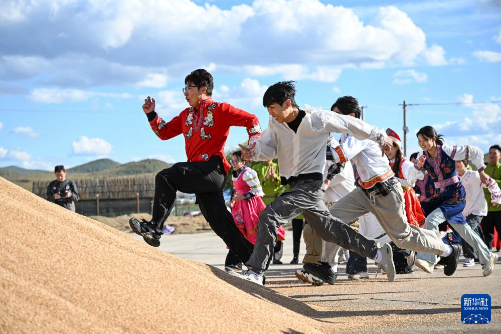 9月15日,在內蒙古呼倫貝爾市額爾古納市恩和俄羅斯族民族鄉,學生們參加豐收節活動。