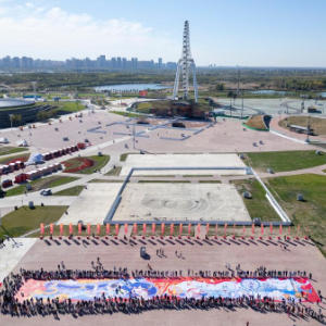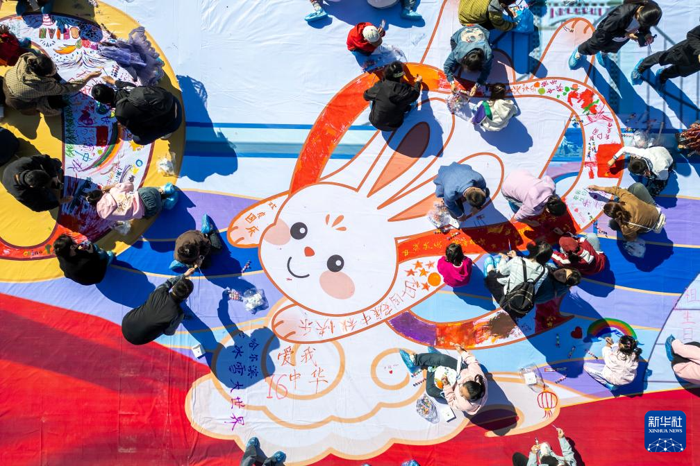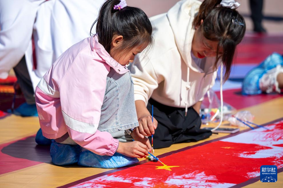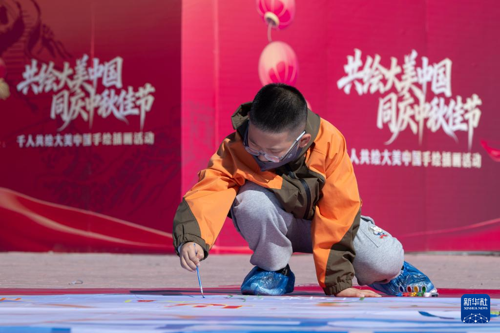 10月6日,哈爾濱冰雪大世界園區舉辦千人共繪大美中國插畫活動,500組親子家庭在一幅長76米、寬10米的巨型畫布上共同完成涂色。