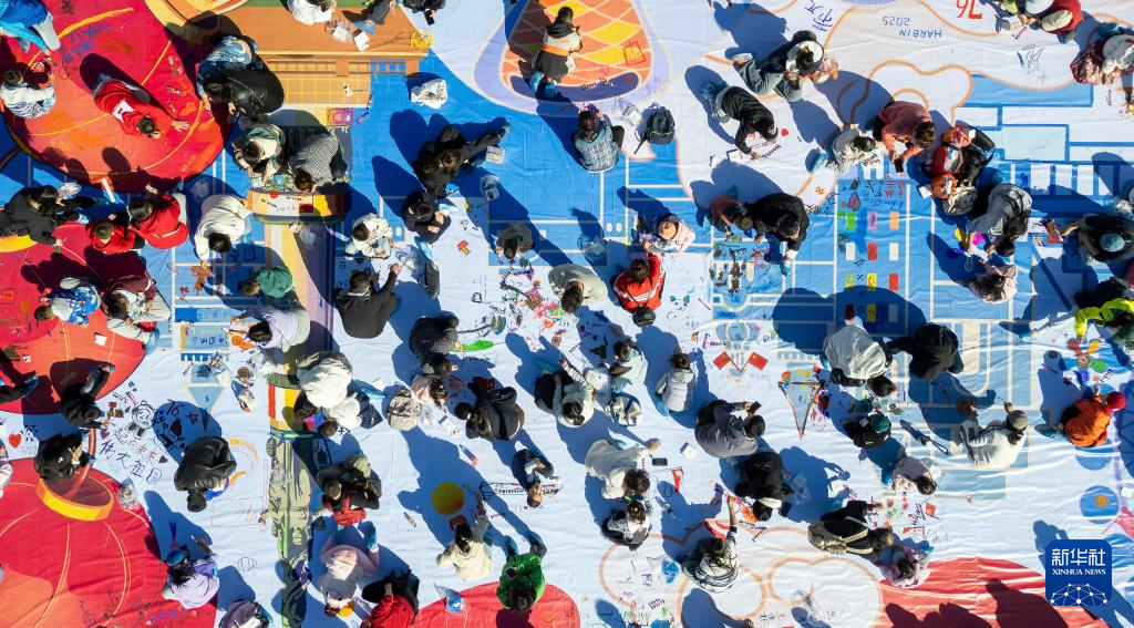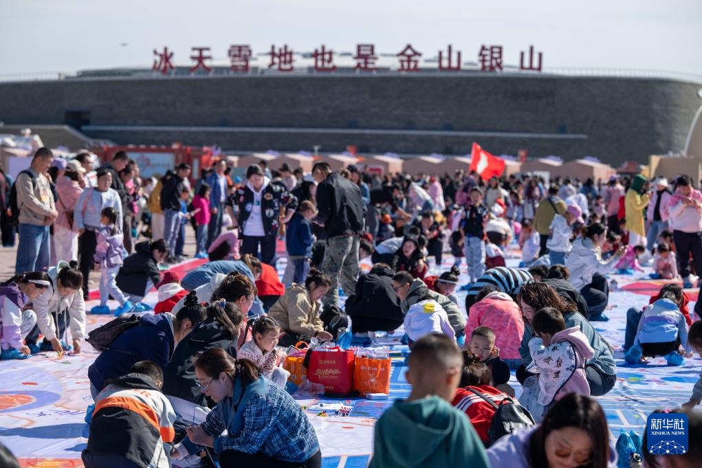 10月6日,人們在哈爾濱冰雪大世界園區參與繪畫。