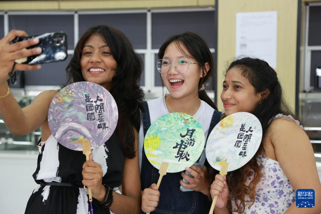 10月6日,在位于云南省蒙自市的紅河學院,中外學生參加“千里共嬋娟,青年話團圓”中秋節茶話會活動。