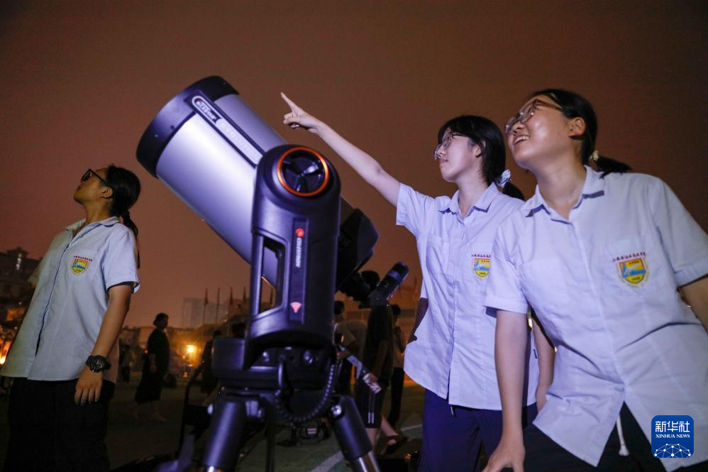 10月6日,江蘇省海安高級中學天文社團成員在學校操場上進行觀月活動。