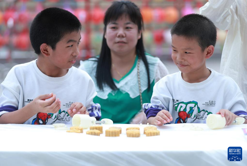 10月6日,家長陪伴孩子們在湖北省秭歸縣九歌巷子制作月餅。