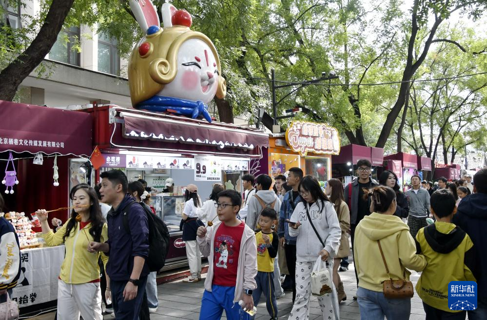 10月6日,游客游覽北京南鑼鼓巷。
