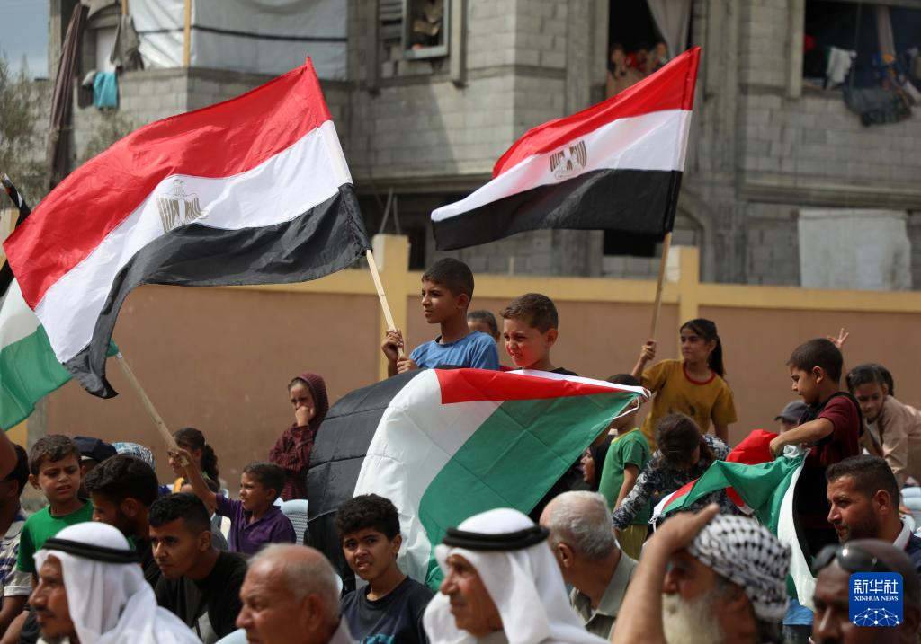 10月9日,在加沙地帶中部代爾拜拉赫,巴勒斯坦民眾在獲悉加沙?;饏f議的消息后慶祝。