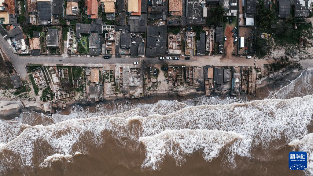 這是10月4日在巴西里約熱內盧州阿塔福納拍攝的受海岸侵蝕影響的民房(無人機照片)。